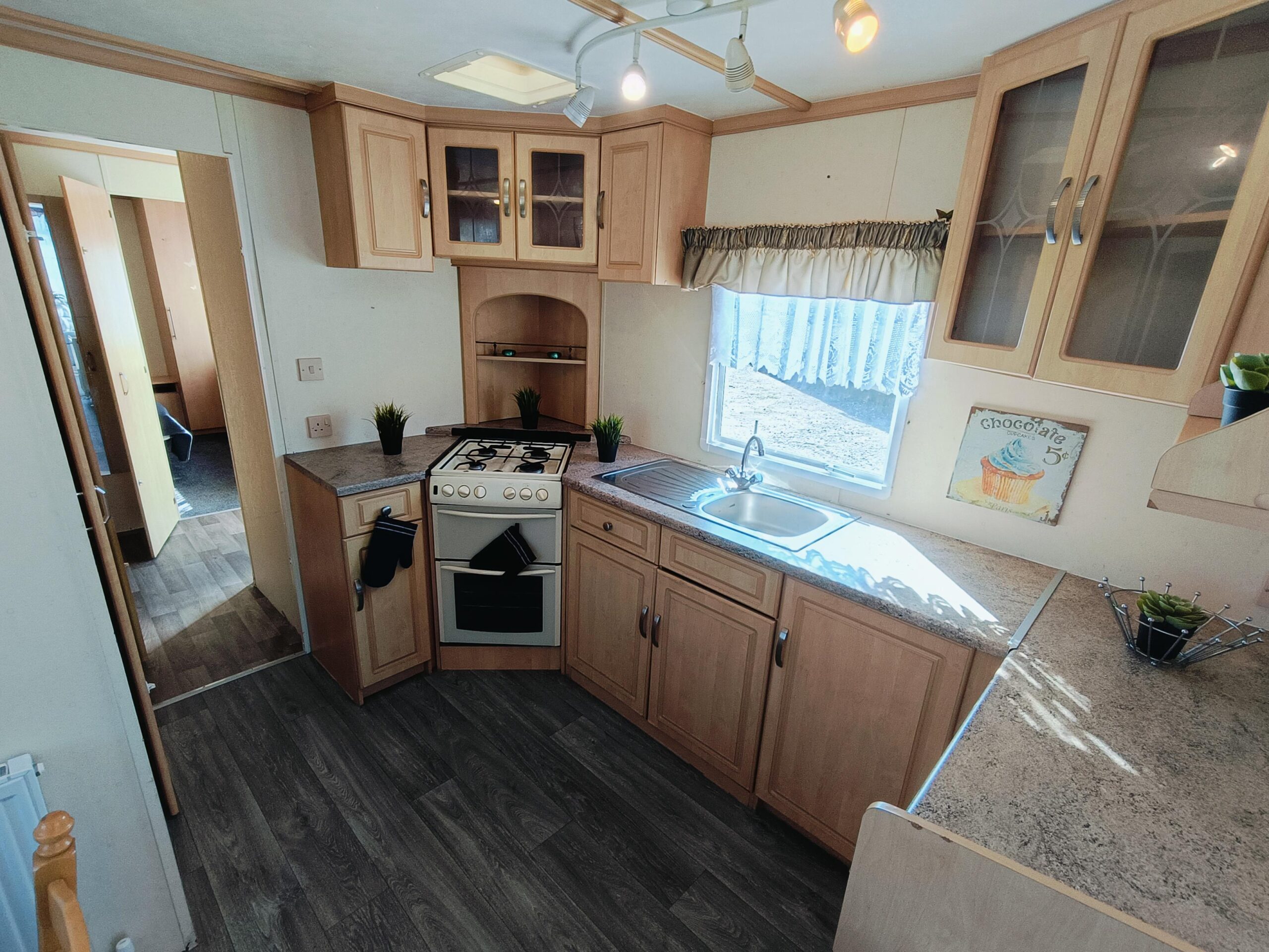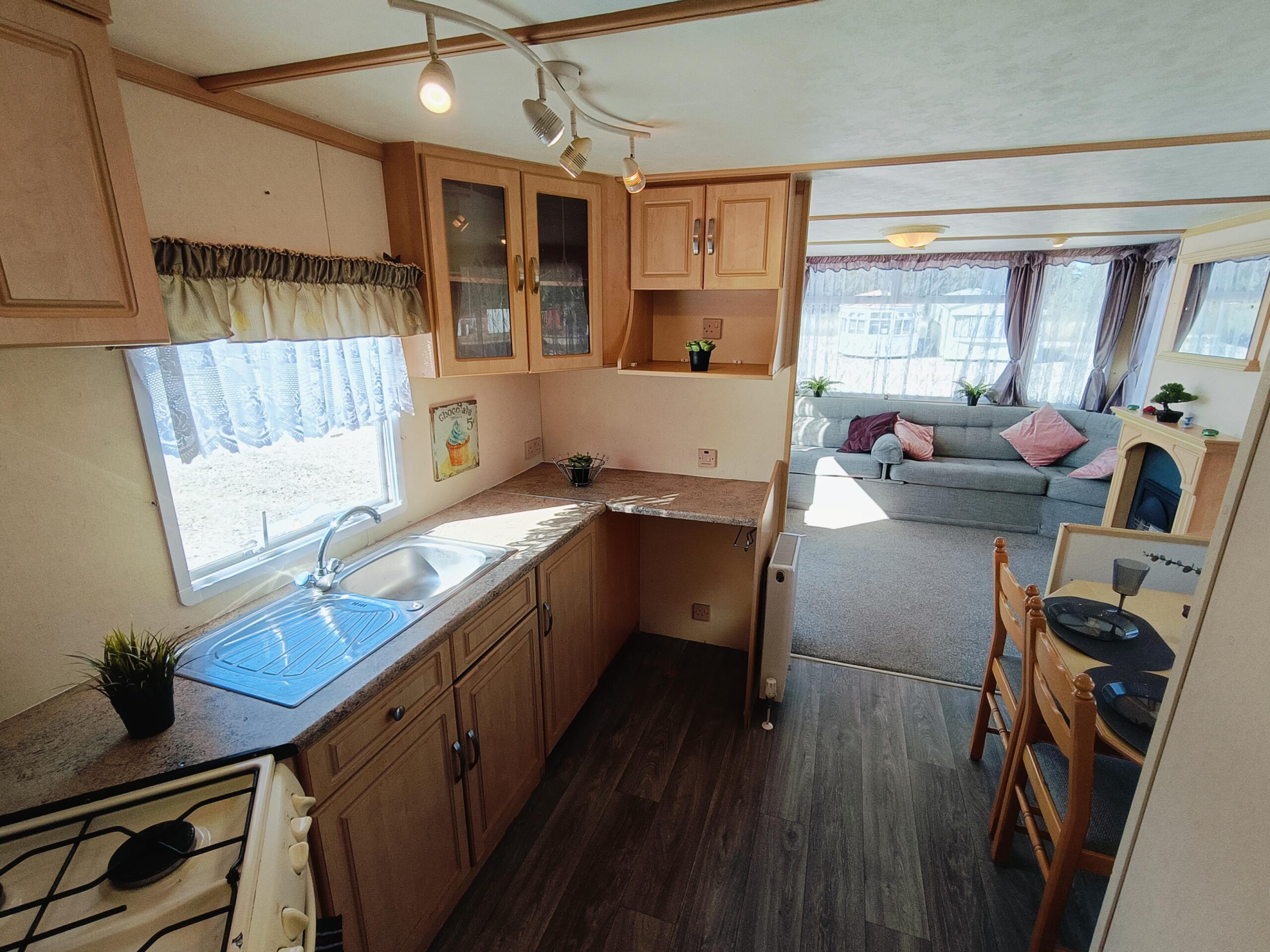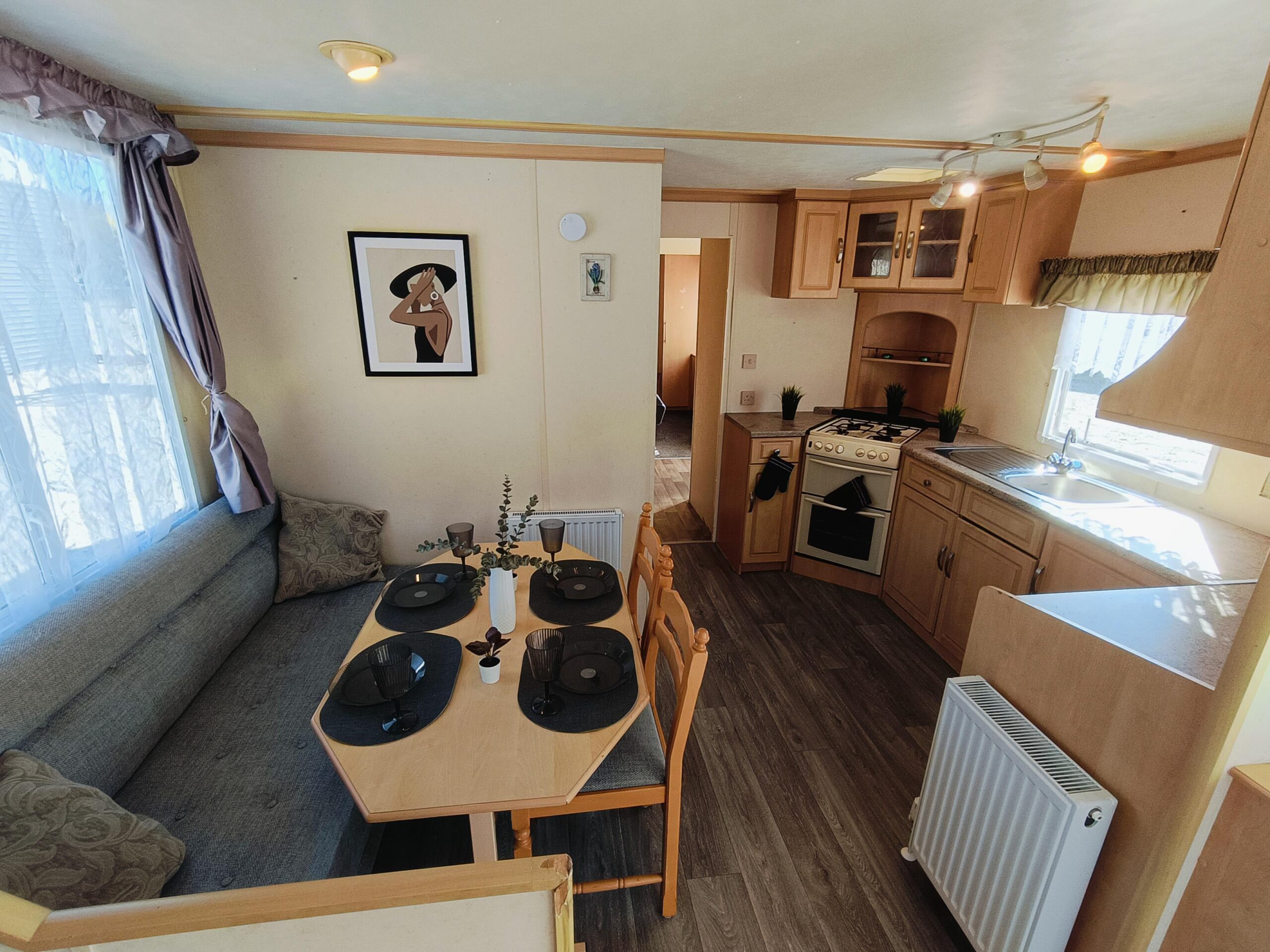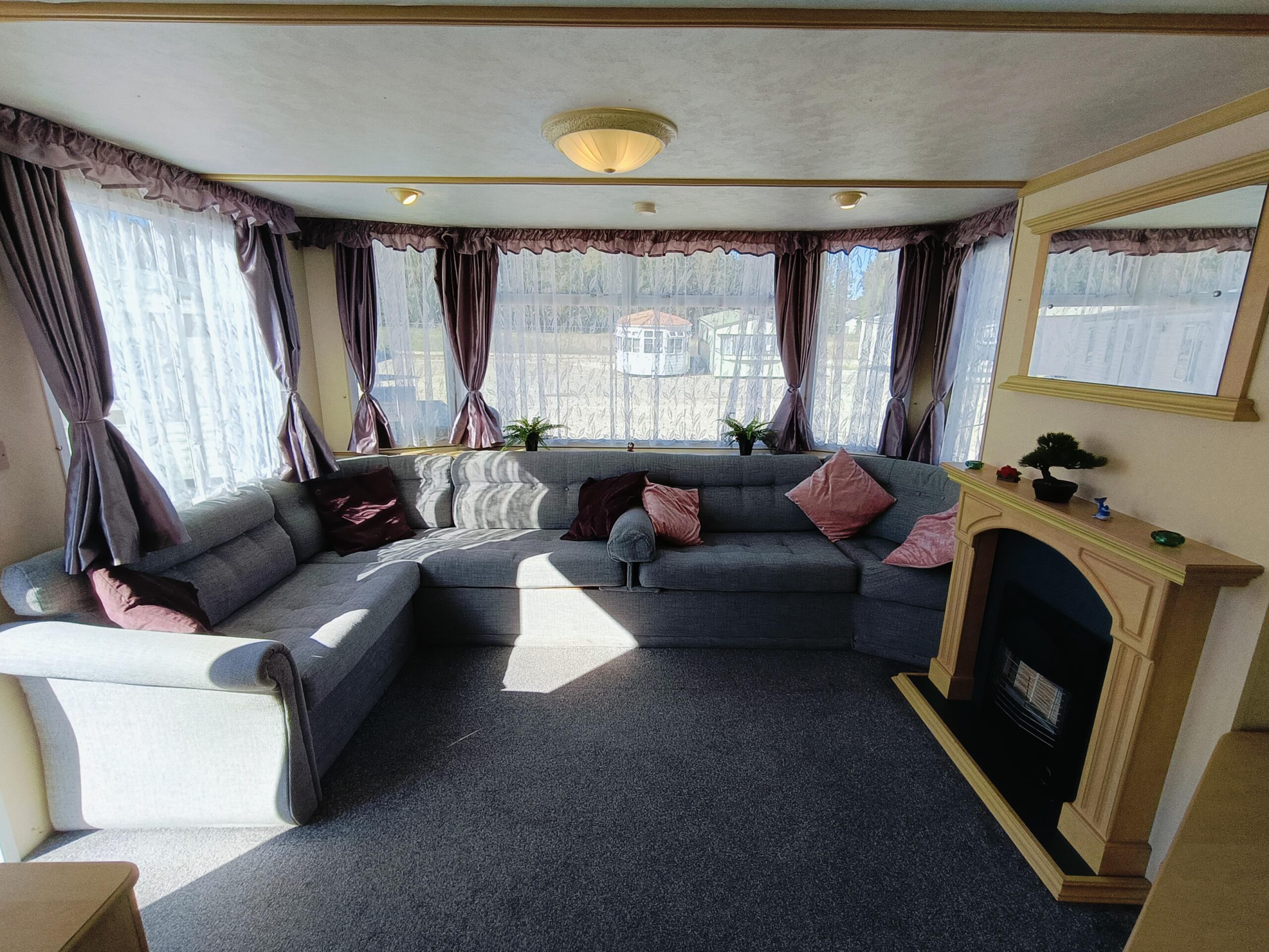 Bardzo ładny w pełni izolowany, zadbany i czysty domek angielski z drzwiami PCV przestronnym salonem, w którym znajduje się sofa, szafy, kominek, jadalnia