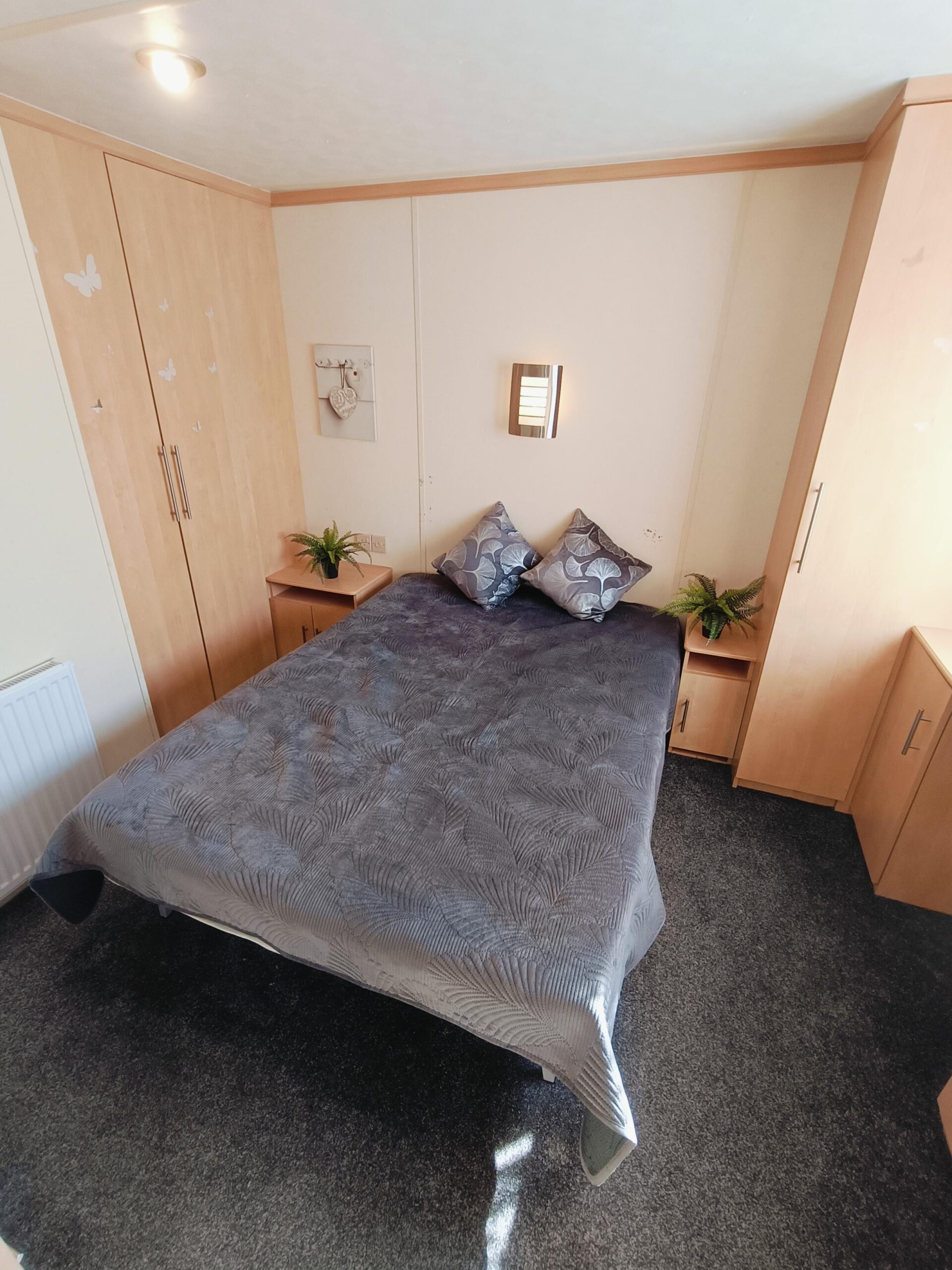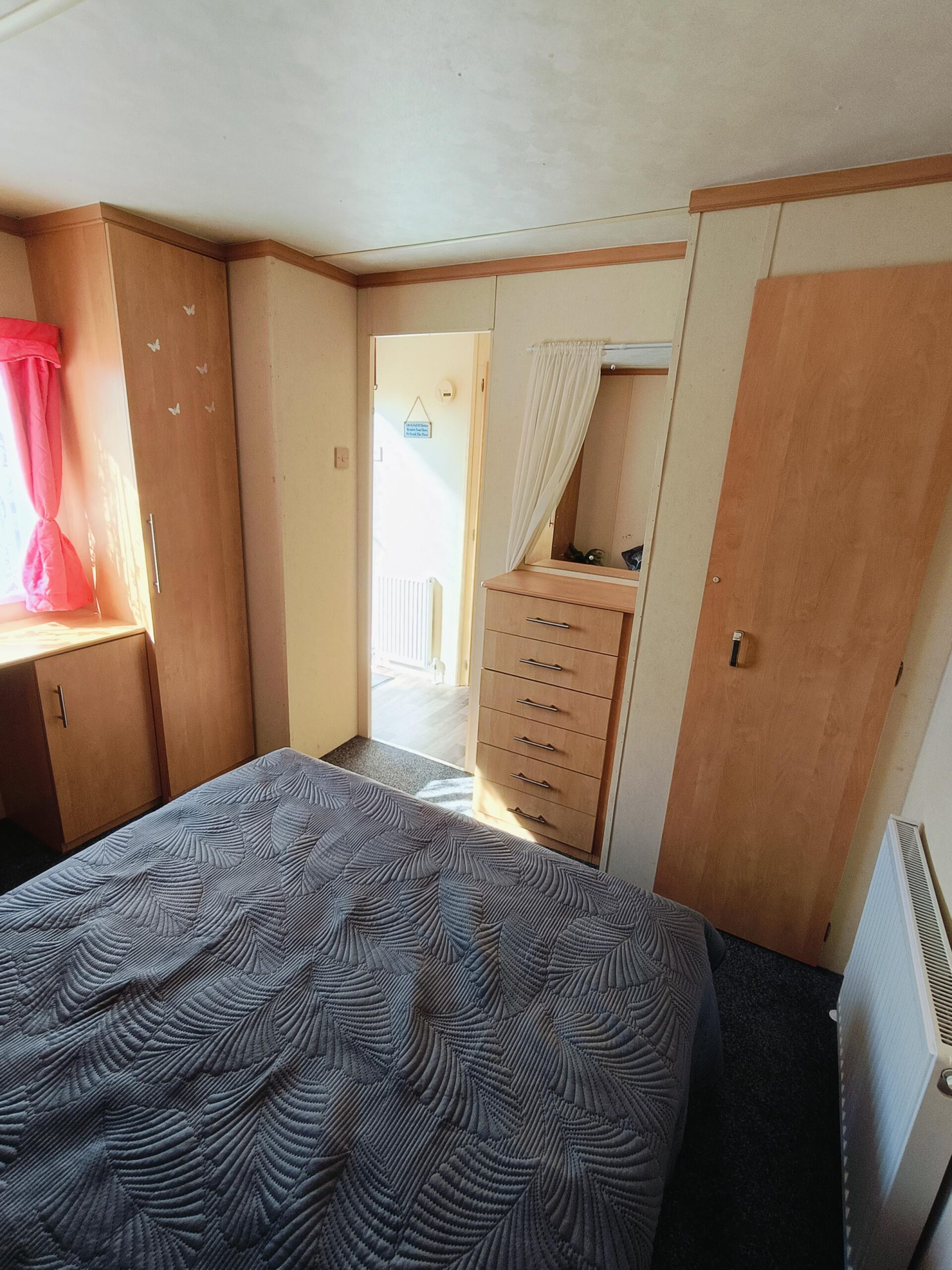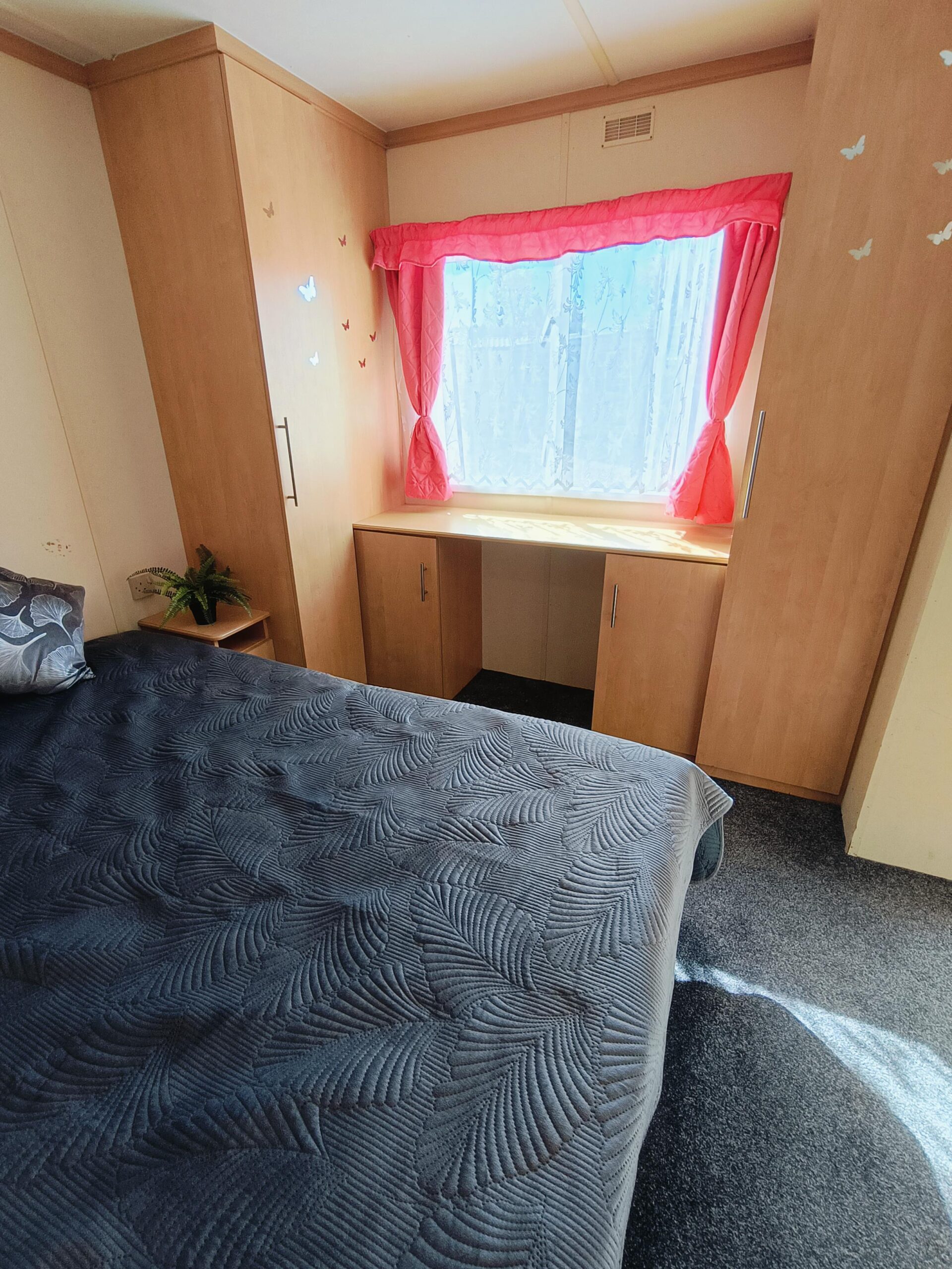W jednej z sypialni znajdują się 2 łóżka pojedyncze i szafa, w drugiej mieści się garderoba z stolikiem i lustrem, duże łóżko małżeńskie i oddzielne wejście do toalety