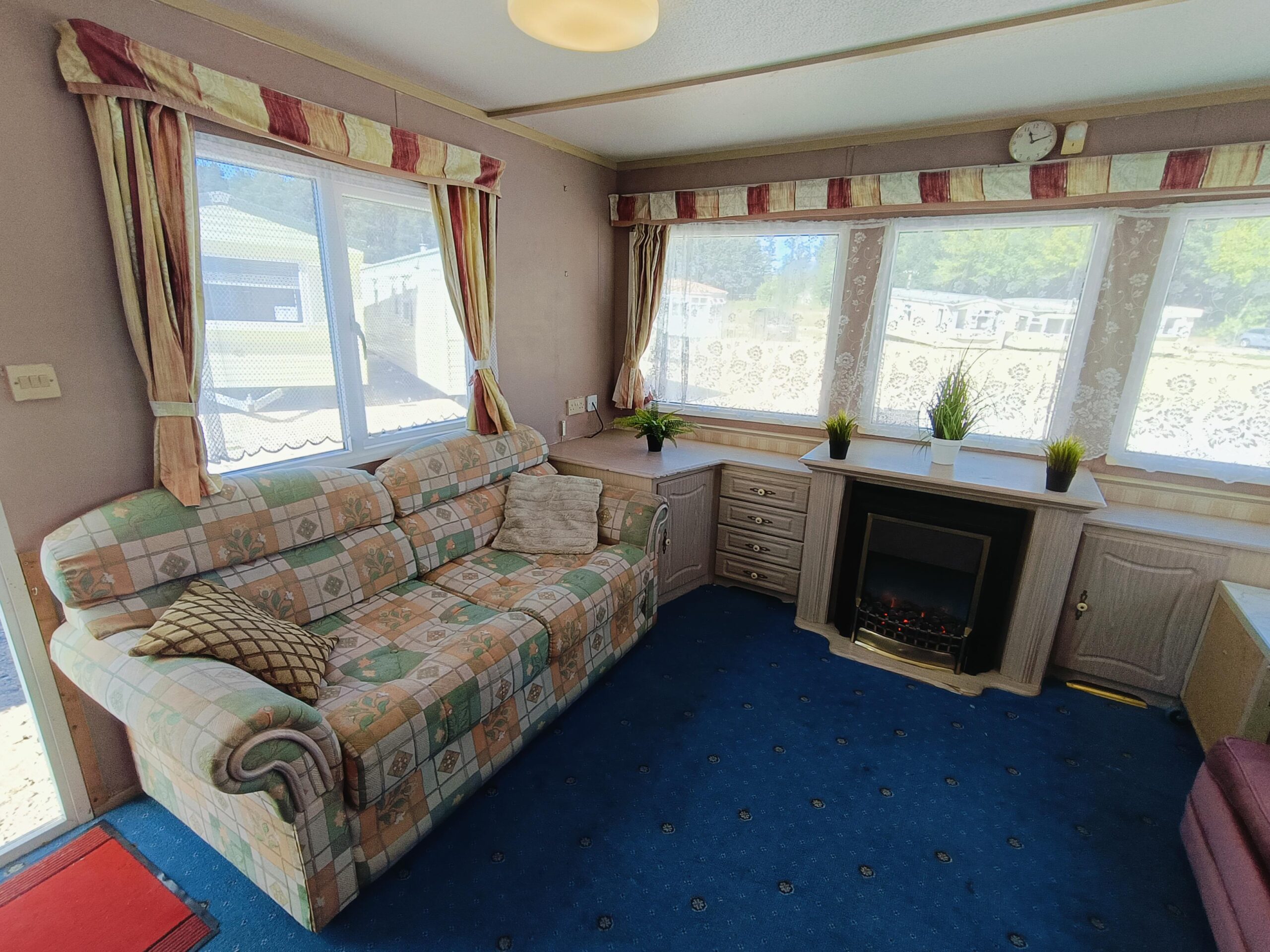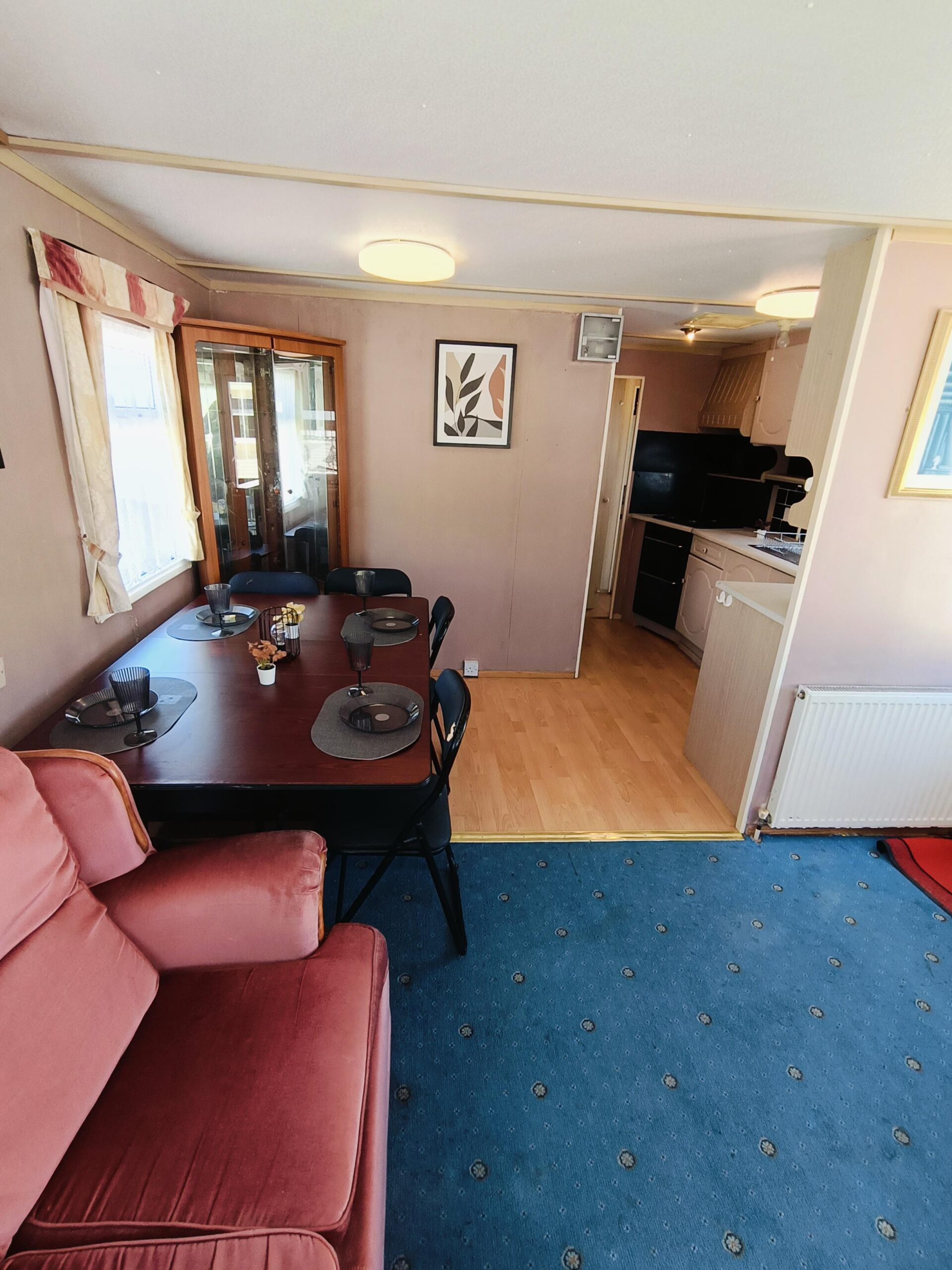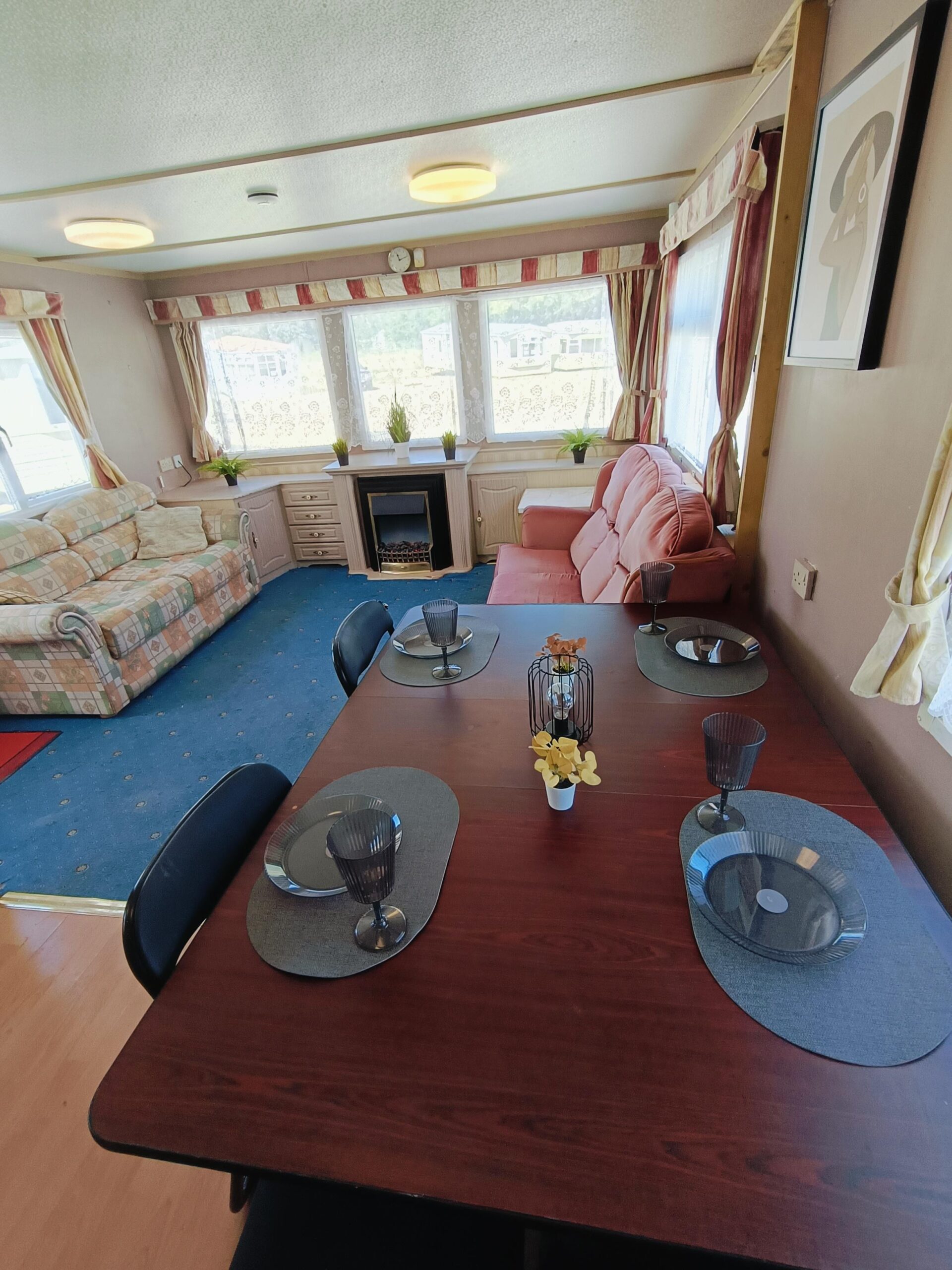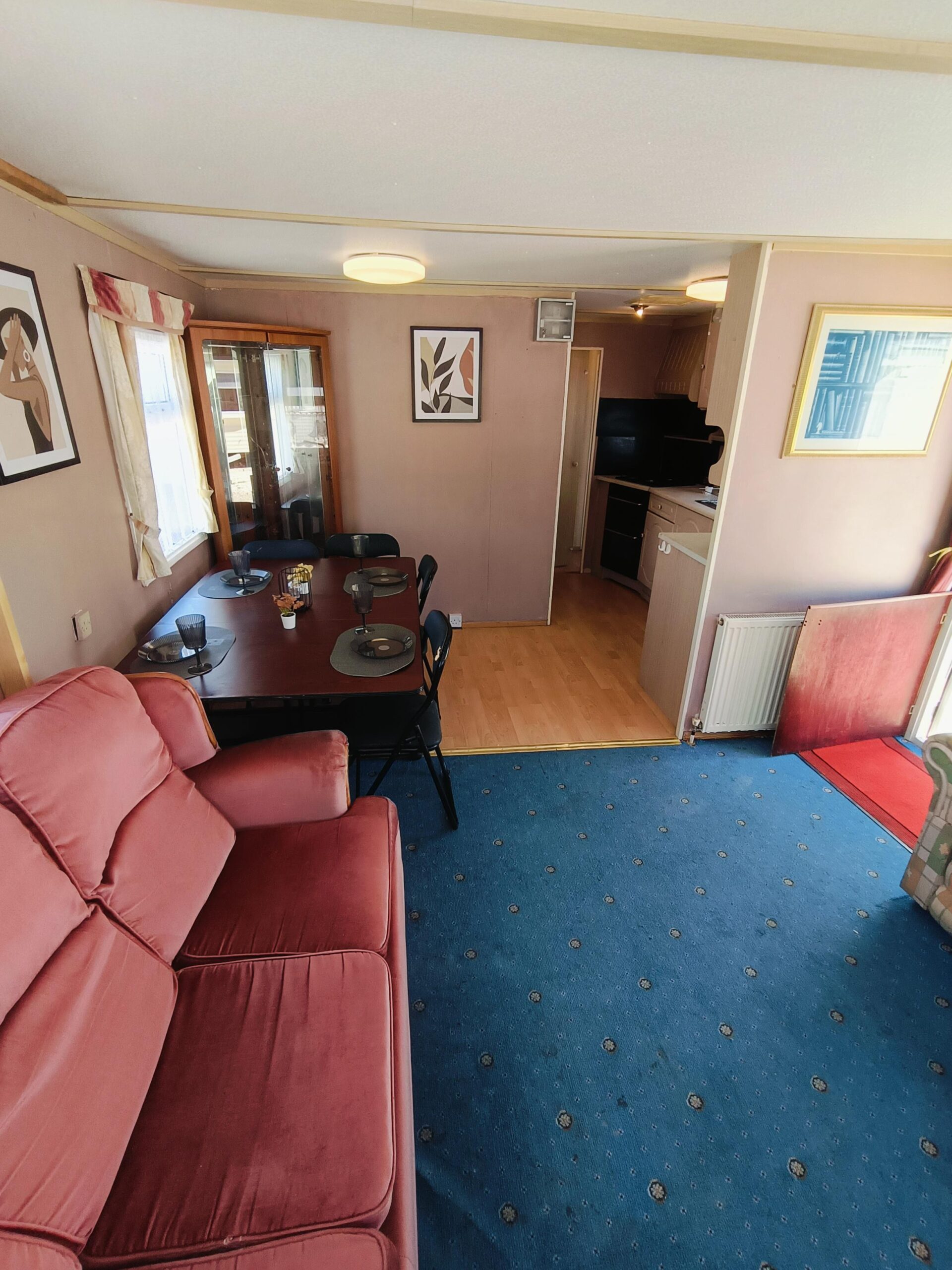 Bardzo ładny w pełni izolowany, zadbany i czysty CAŁOROCZNY domek angielski z drzwiami PCV i przestronnym salonem, w którym znajduje się kominek gazowy,