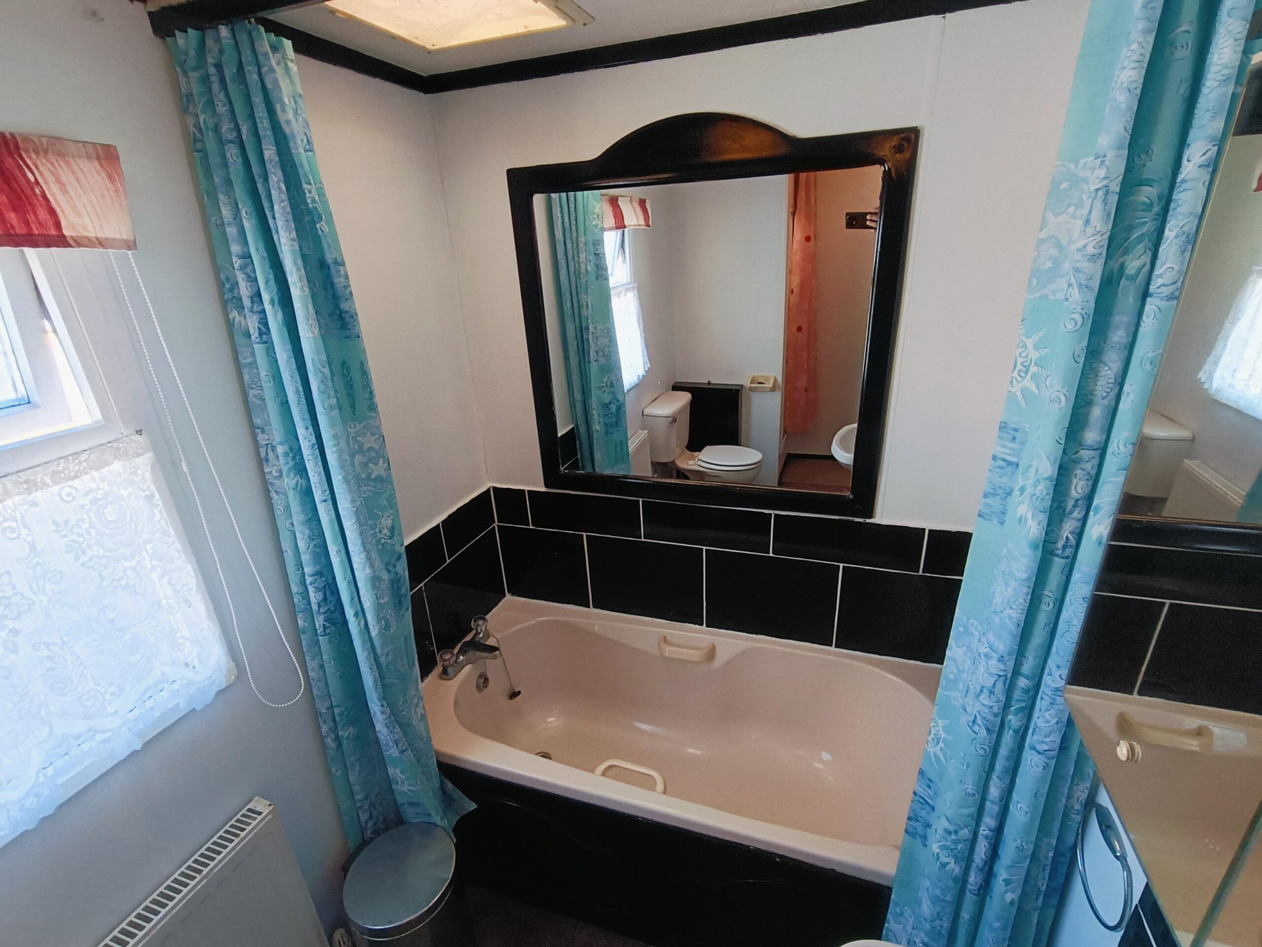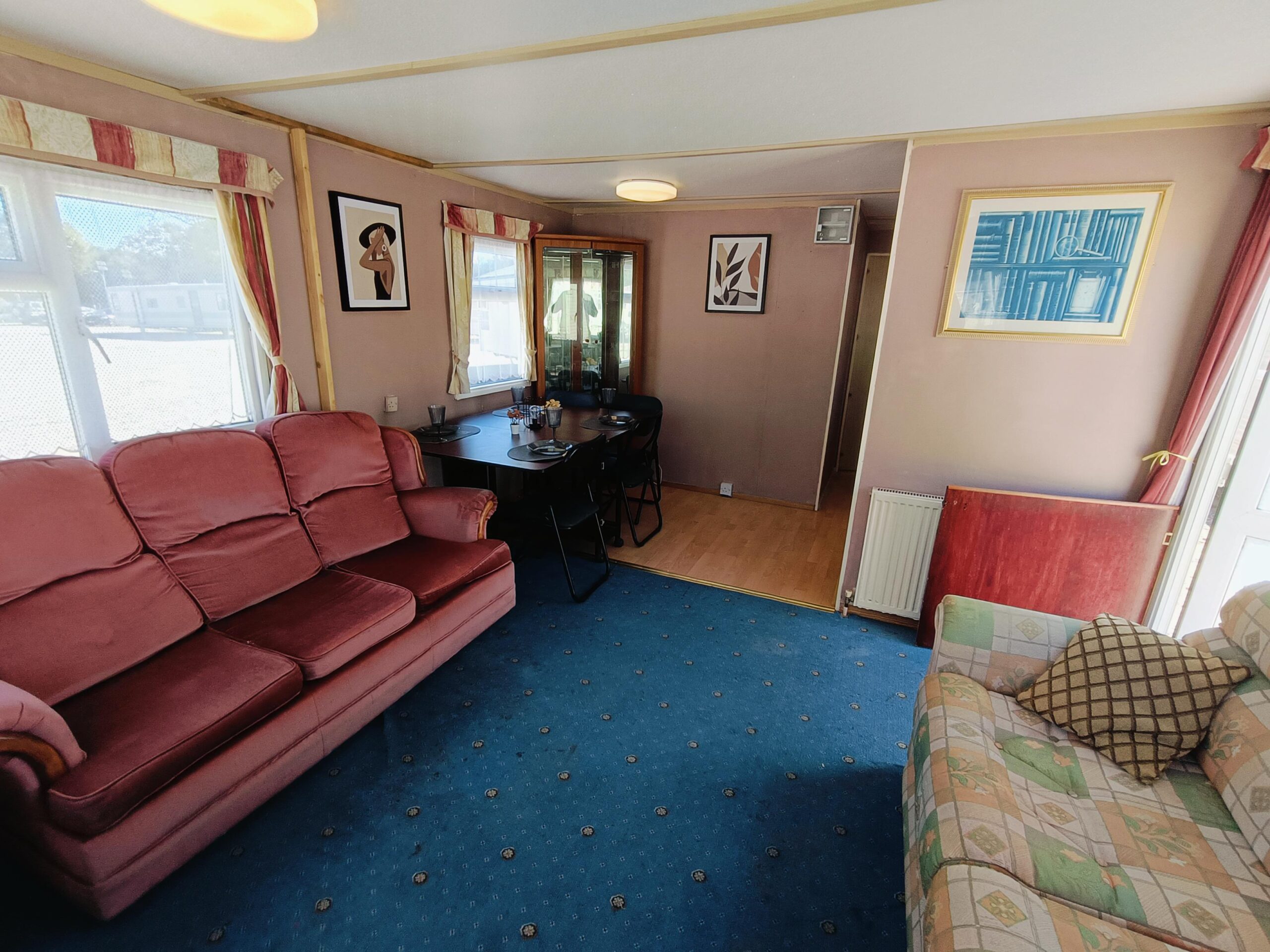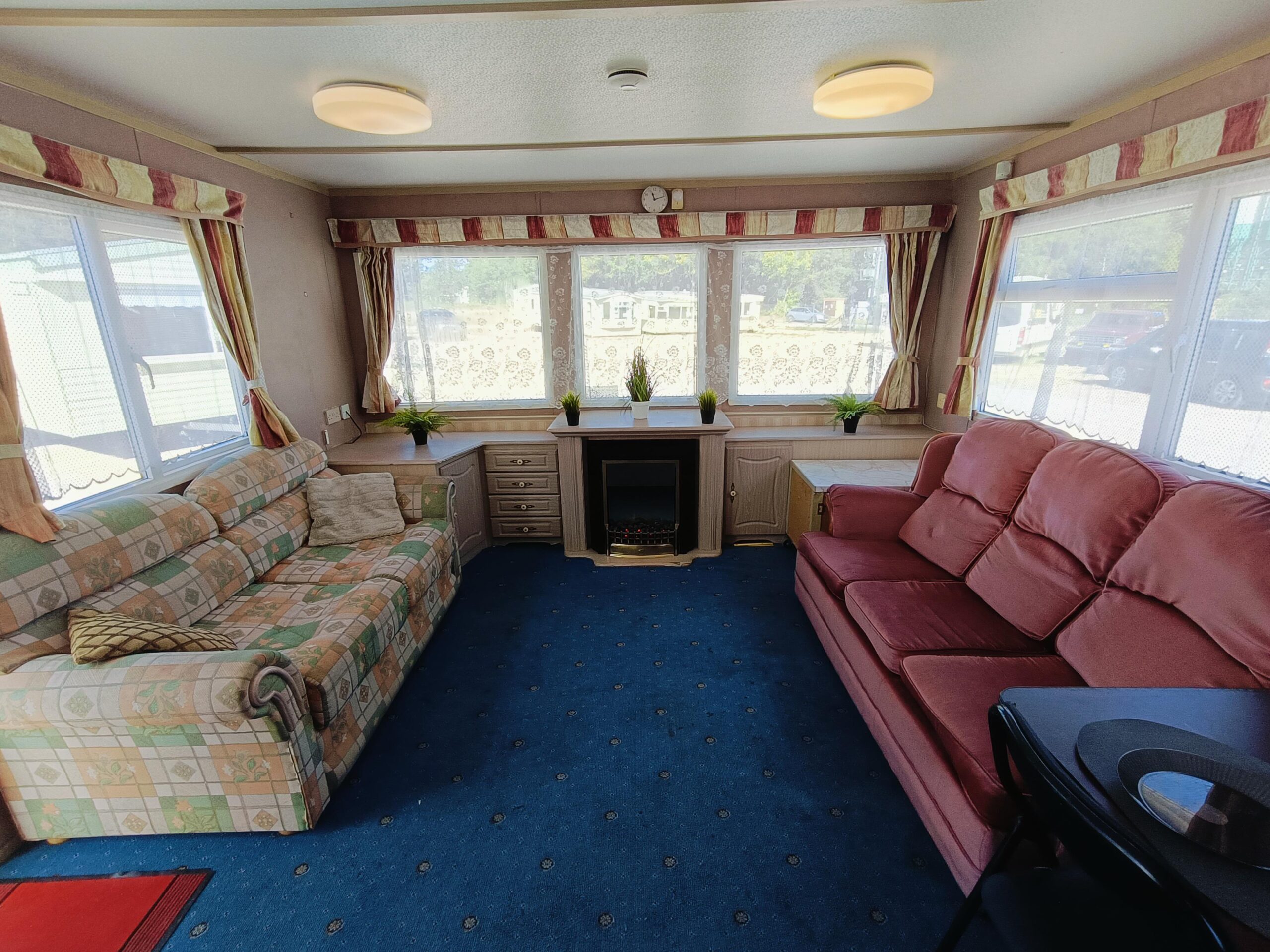 Bardzo ładny w pełni izolowany, zadbany i czysty CAŁOROCZNY domek angielski z drzwiami PCV i przestronnym salonem, w którym znajduje się kominek gazowy,
