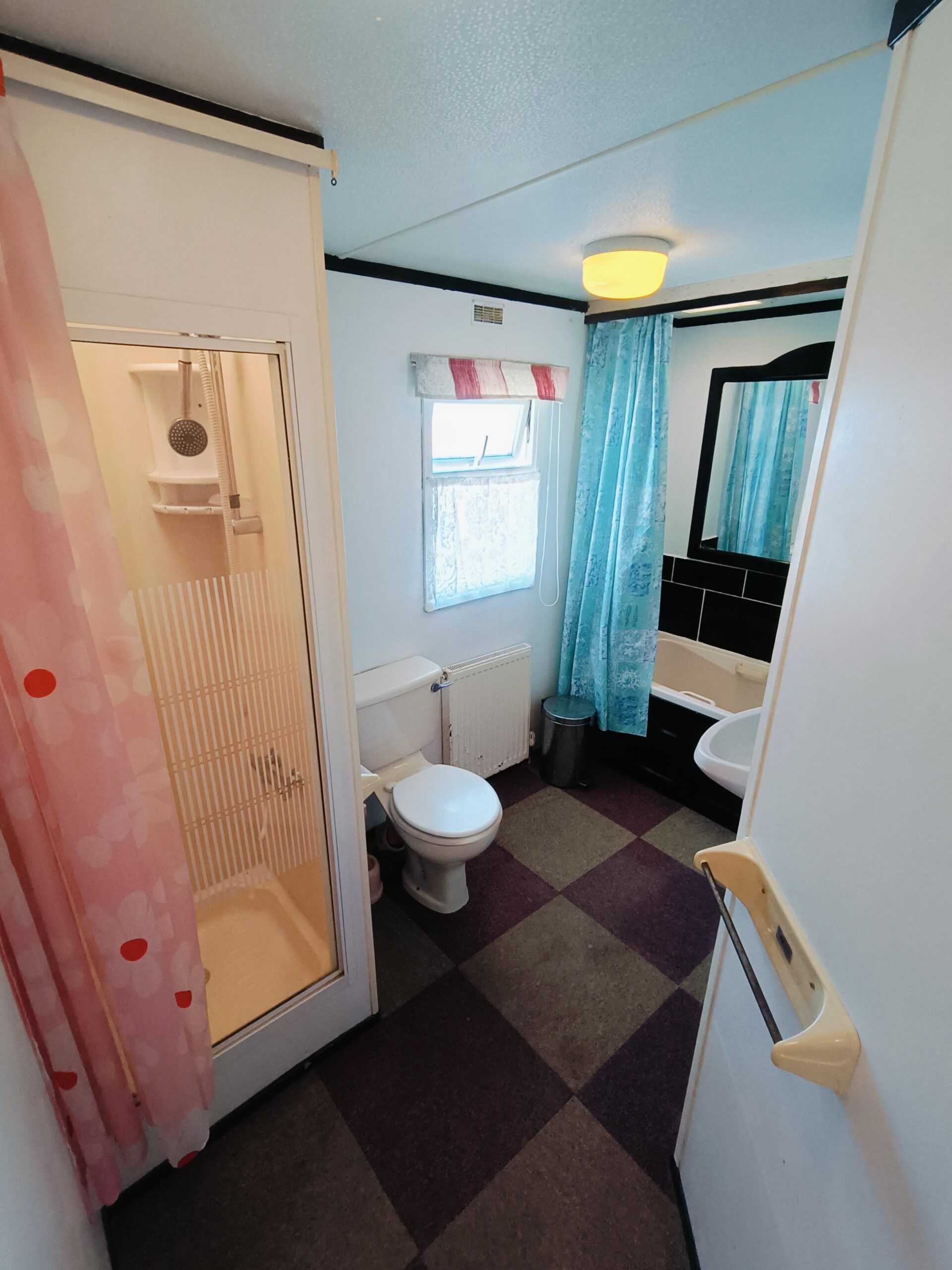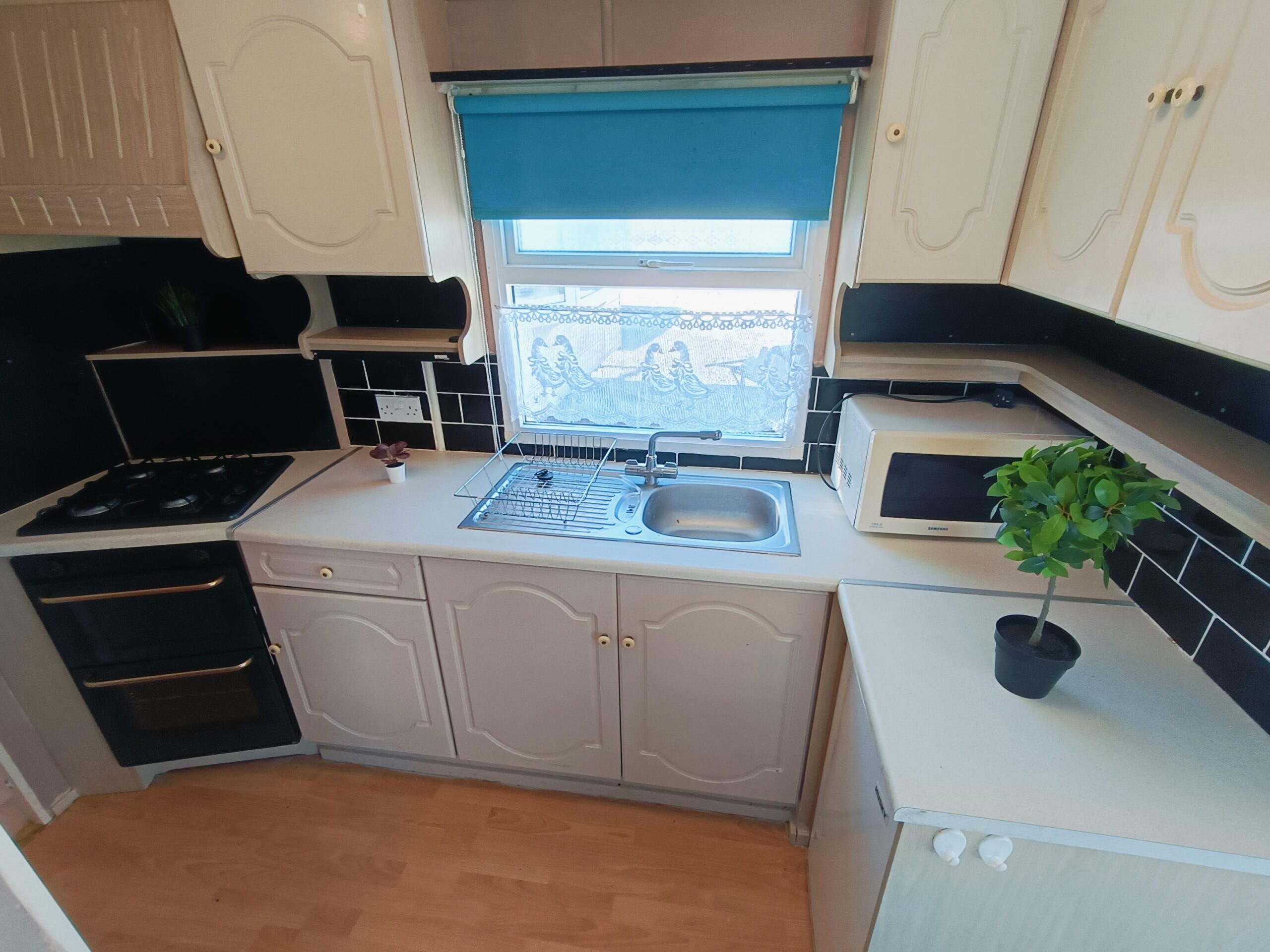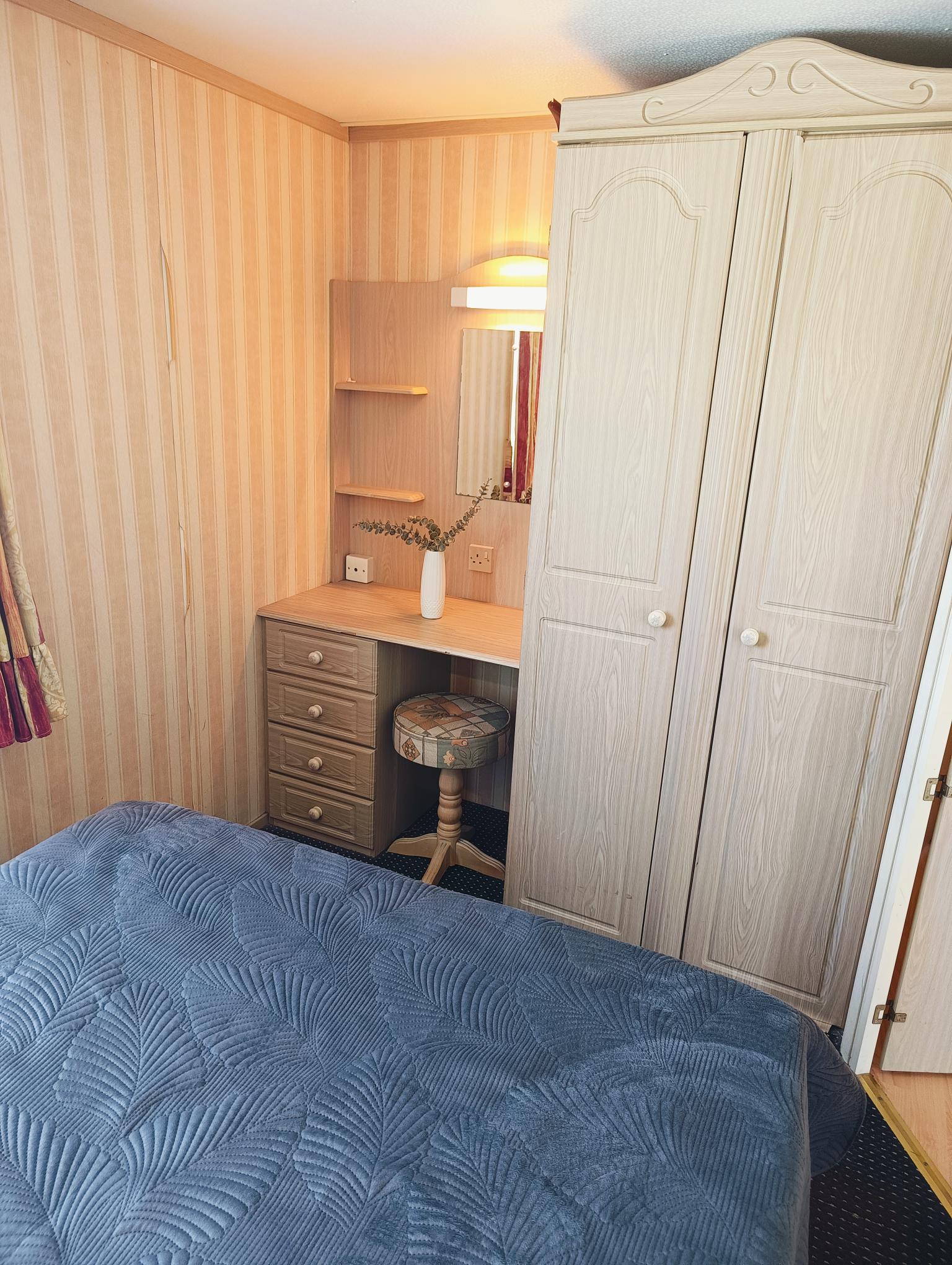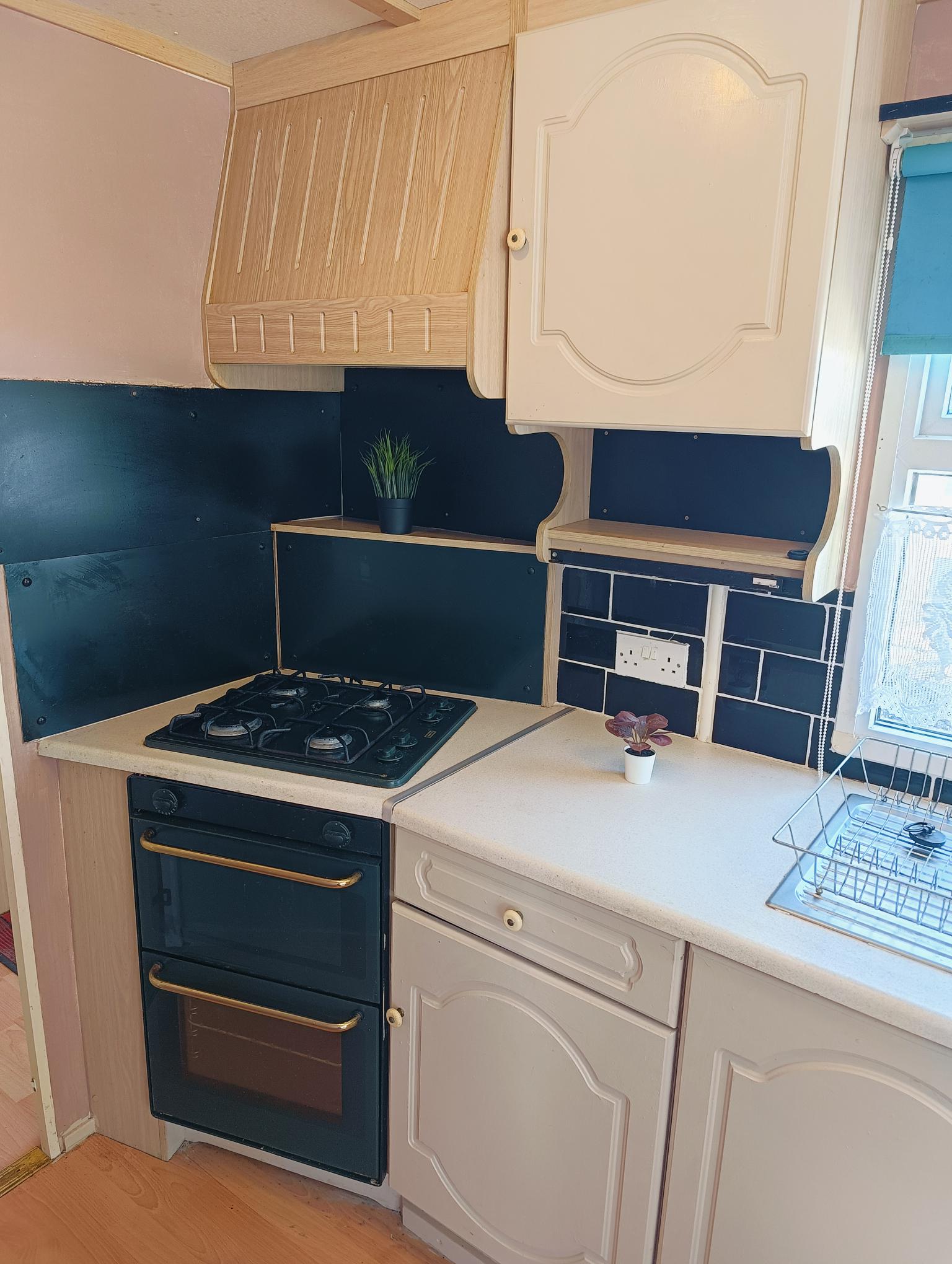 Bardzo ładny w pełni izolowany, zadbany i czysty CAŁOROCZNY domek angielski z drzwiami PCV i przestronnym salonem, w którym znajduje się kominek gazowy,
