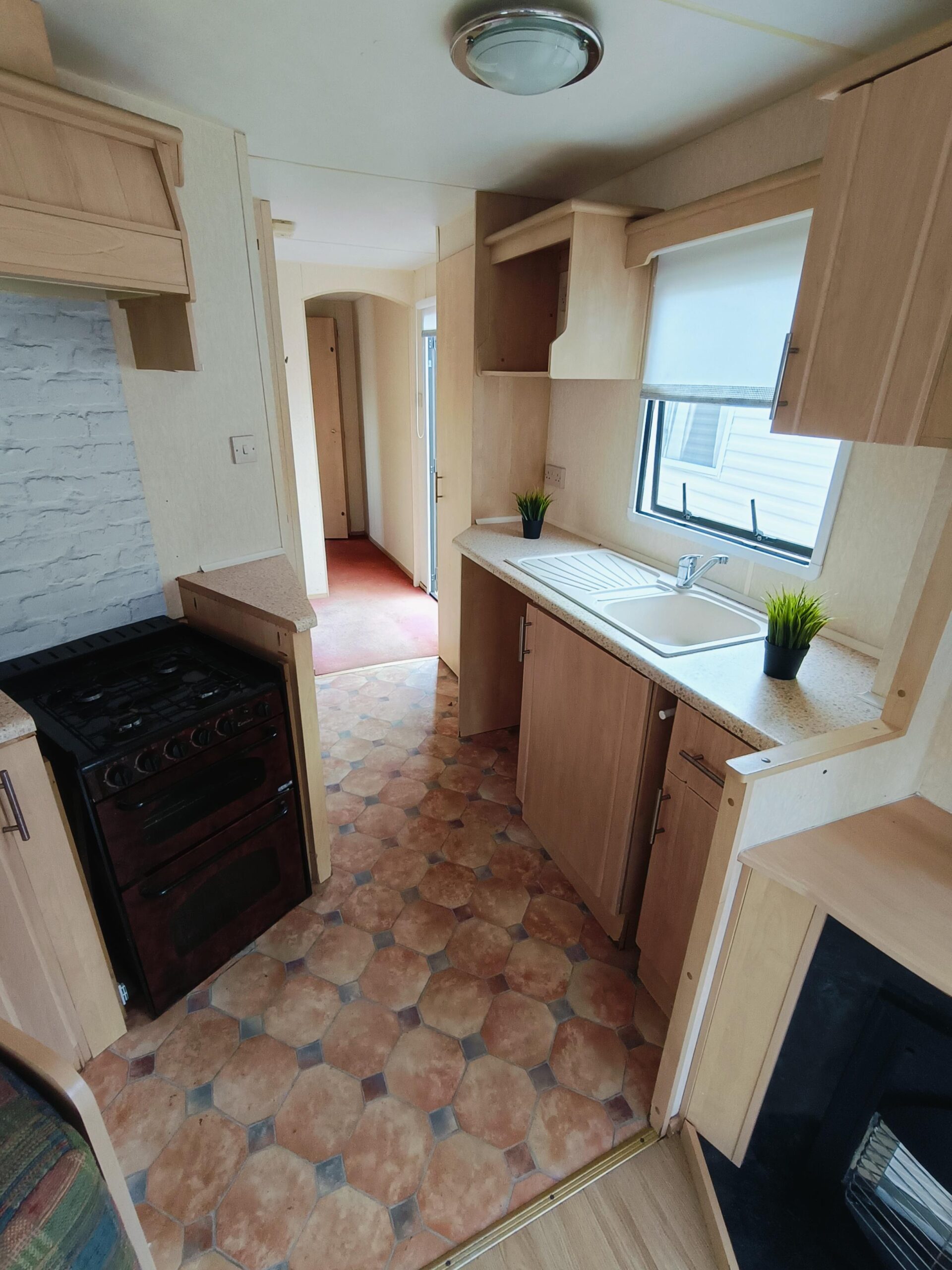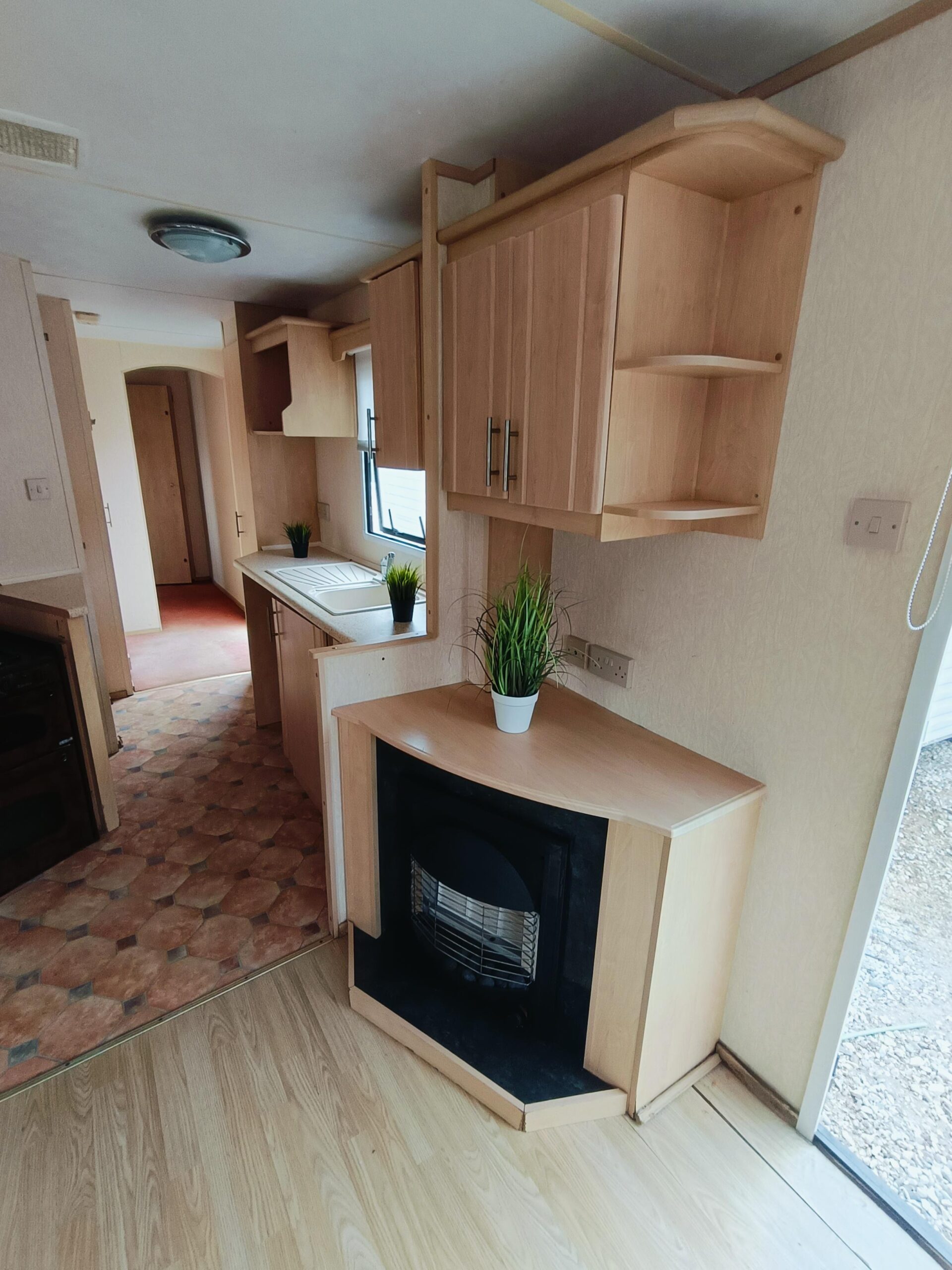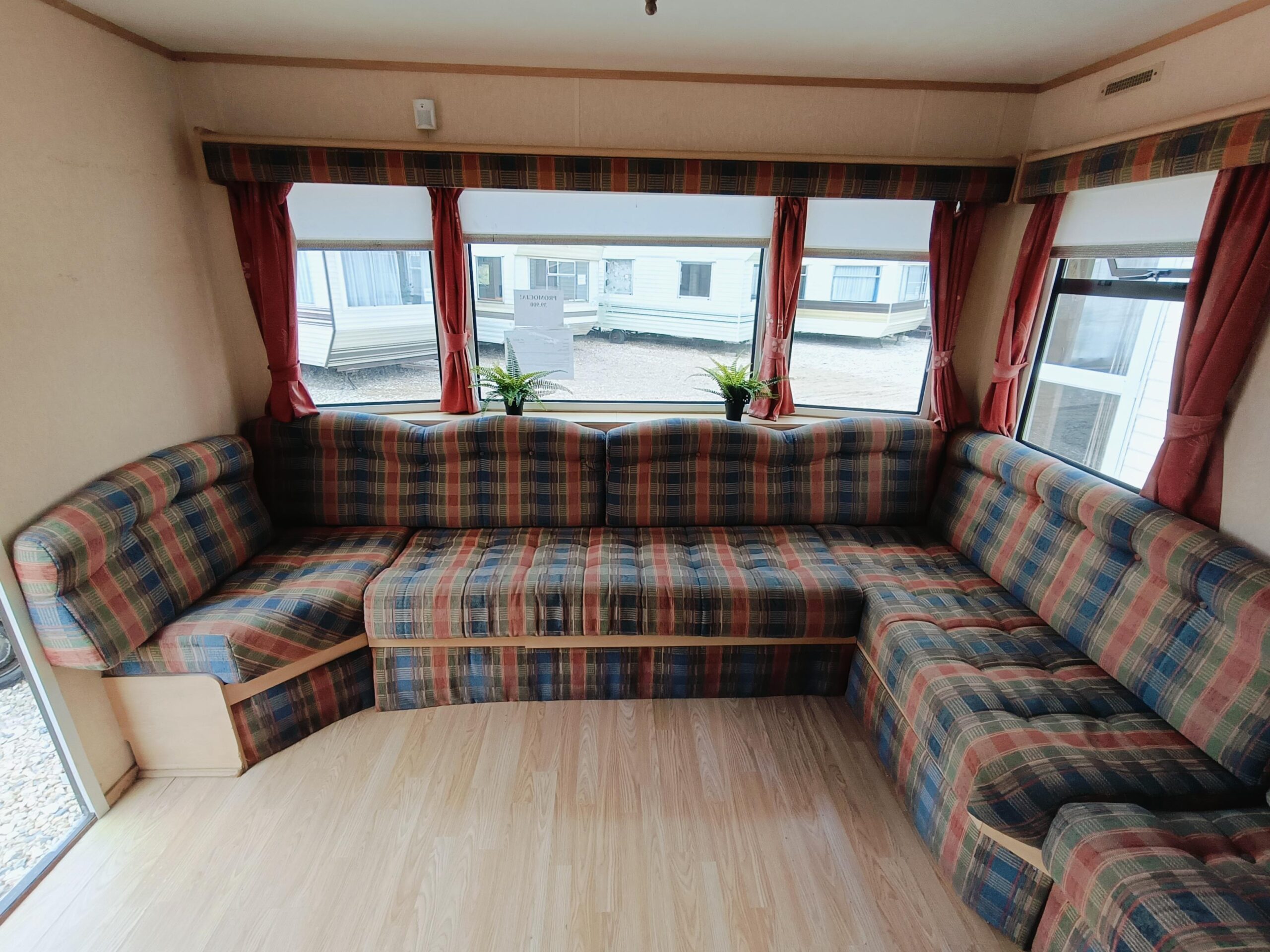 Bardzo ładny w pełni izolowany, czysty domek holenderski z drzwiami aluminium i przestronnym salonem, w którym znajduje się kominek, duża sofa, stół, stolik na TV. JADALNIA
