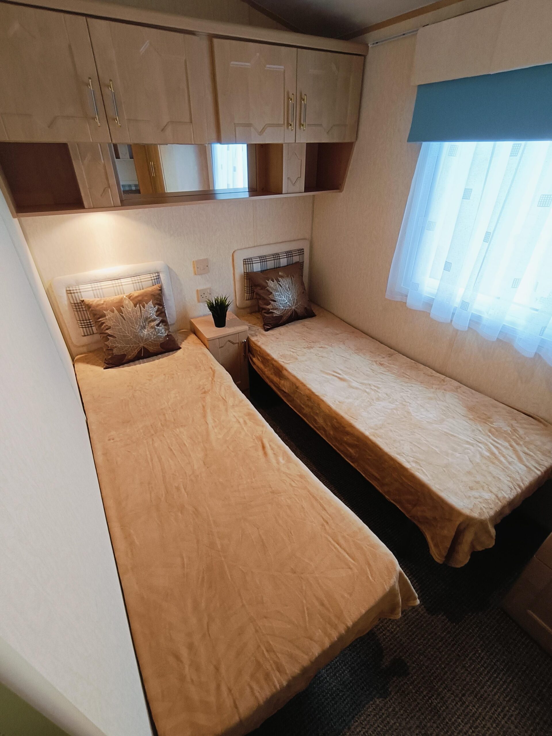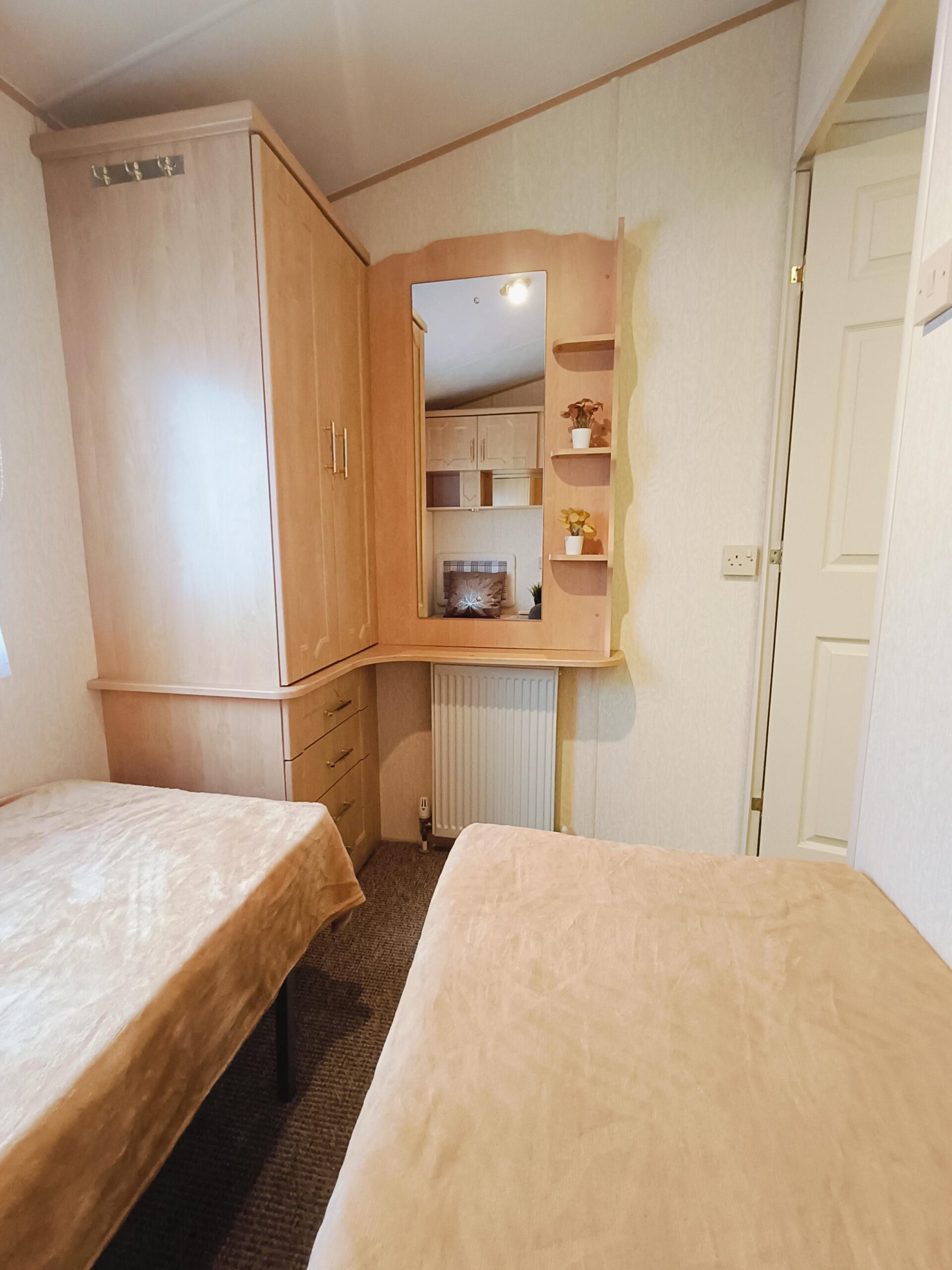 W jednej z sypialni znajduje sie garderoba oraz 2 łóżka pojedyńcze. w drugiej mieści się duże łóżko sypialniane, garderoba z stolikiem i lustrem, wejściem do toalety.