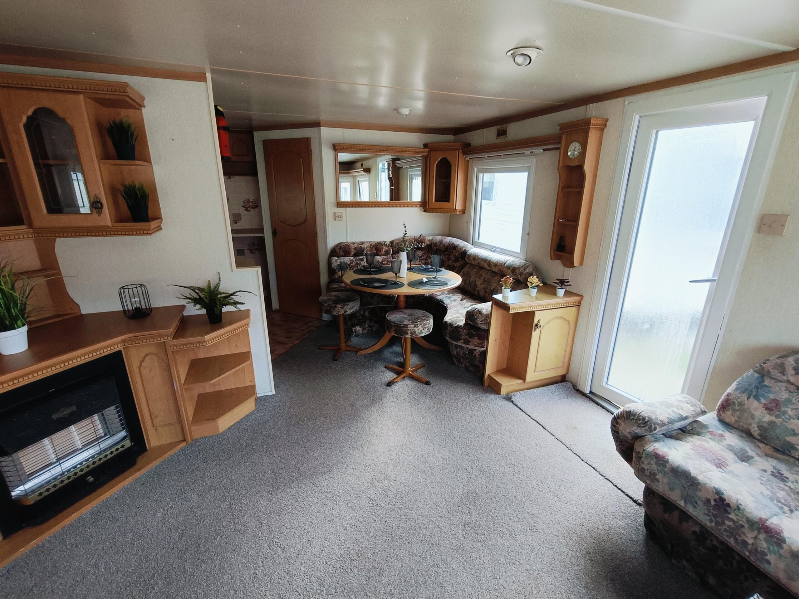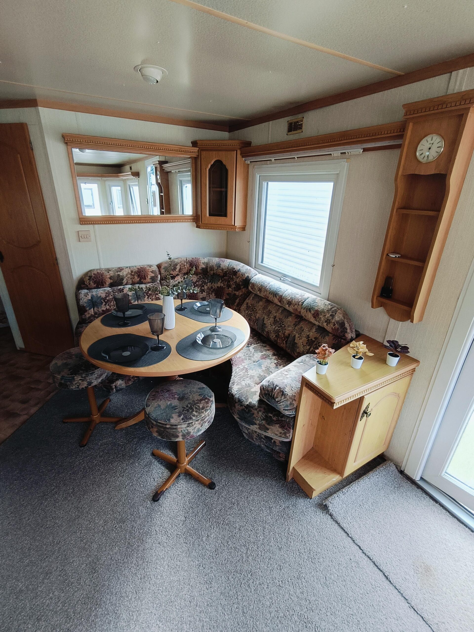 Bardzo ładny w pełni izolowany, zadbany i czysty domek holenderski z drzwiami pcv przestronnym salonem, w którym znajduje się wygodna sofa. JADALNIA